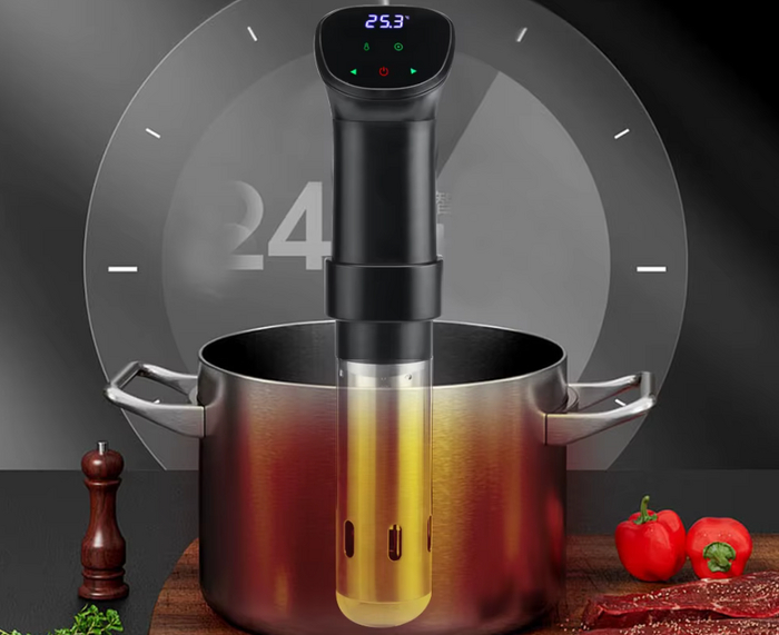 Устройство для точного контроля температуры воды. Поддерживает равномерный нагрев для достижения идеального результата. Оснащен цифровым дисплеем и управлением. Адаптация для профессионального и домашнего использования. Продолжайте готовить мясо, рыбу и овощи с сохранением их естественного вкуса и сочности.