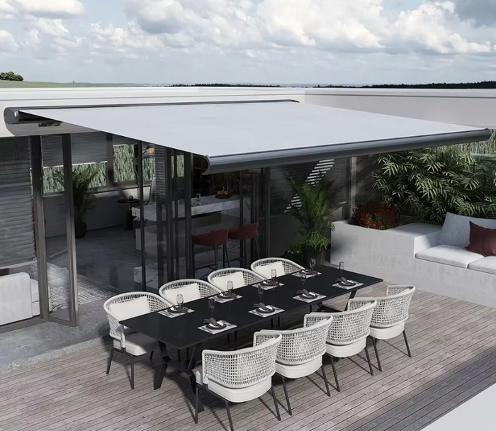 Практичный навес, который можно использовать для защиты автомобиля, террасы или зоны отдыха от дождя и солнца. Конструкция легко разворачивается и сворачивается, а материал устойчив к влаге и УФ-лучам.