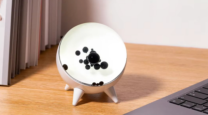 Необычный декоративный аксессуар для рабочего стола. Внутри находится жидкость, которая реагирует на звук, формируя разнообразные узоры. Отлично подходит для создания расслабляющей атмосферы.