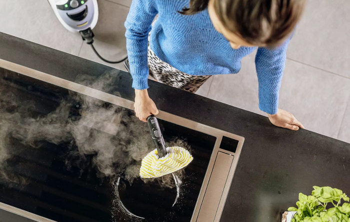 Это один из наиболее популярных бытовых пароочистителей, который профессионально справляется с грязью и жировым налётом. Прибор нагревает воду до образования пара, который затем под давлением выходит через насадку. Высокая температура убивает бактерии и помогает очистить поверхности без использования химии.