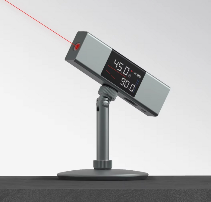Цифровое устройство, заменяющее собой обычный угольник и уровень. Встроенный сенсор и микропроцессор измеряют угол наклона относительно горизонтальной плоскости и выводят показания на экран с точностью до десятых долей градуса.