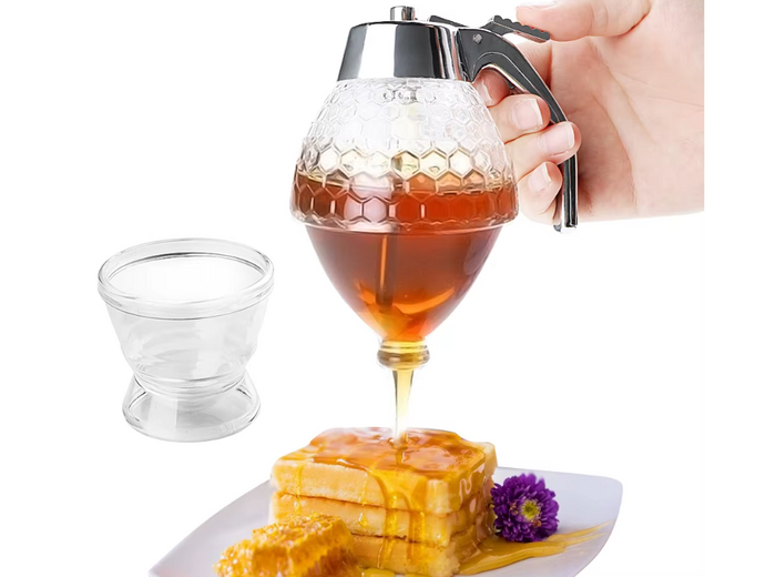 Простой по конструкции, но очень практичный аксессуар. Представляет собой небольшую колбу с клапаном, из которой мёд или сироп подаётся тонкой струйкой при нажатии на рукоятку.