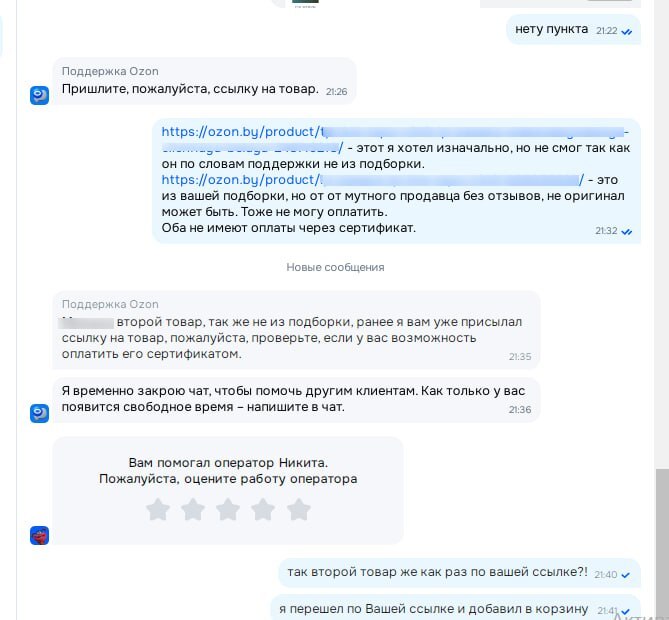 Ну логично же, что это должно решиться через поддержку, поскольку покупатель оценивает другой товар?Ну вот и мы решили обратиться в поддержку: