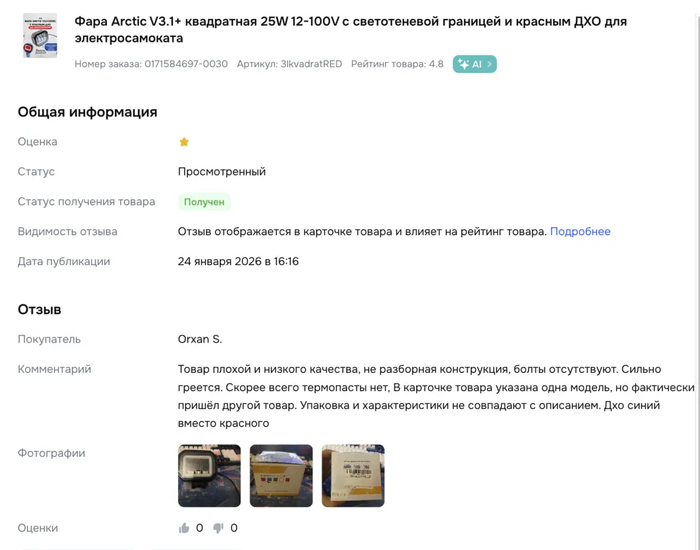 Кстати, отзыв даже изменить невозможно, чтобы повторно отправить его на проверку, то есть я даже не могу предупредить потенциальных покупателей о возможной проблеме.