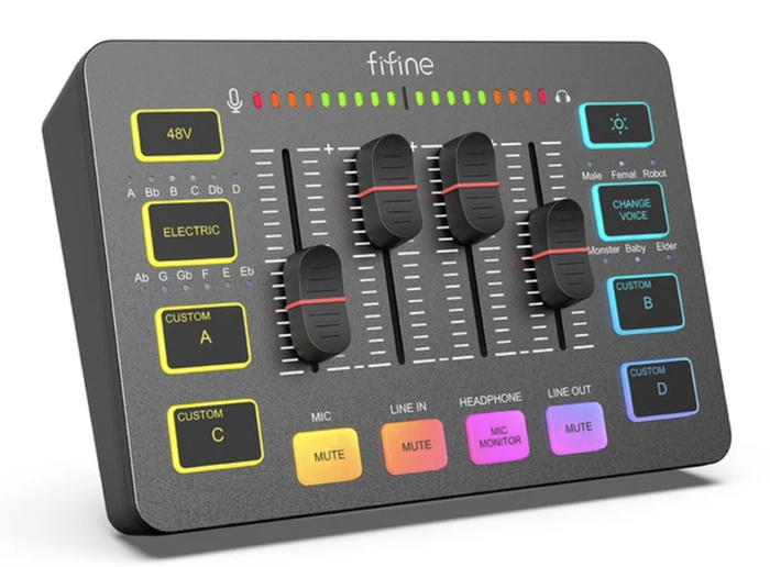 FIFINE SC3 — компактный USB-микшер, созданный для стримеров и подкастеров. Он позволяет управлять звуком в реальном времени. Поддерживается регулировка громкости, эффектов и баланса. Интерфейс простой и удобный даже для новичков.