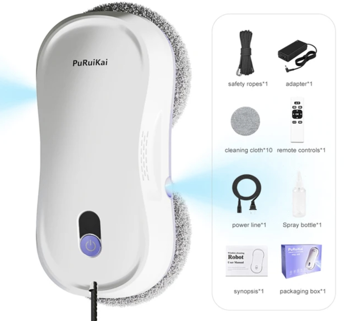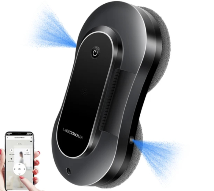 Умный помощник для чистки окон, зеркал и плитки. Работает по интеллектуальной траектории, равномерно распыляя воду и протирая поверхность. Надёжно держится на стекле благодаря вакуумному мотору.