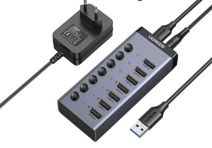 Практичный и надёжный хаб с семью портами USB 3.0 и индивидуальными переключателями. Позволяет подключать внешние устройства, флешки, клавиатуру и мышь к одному разъёму.