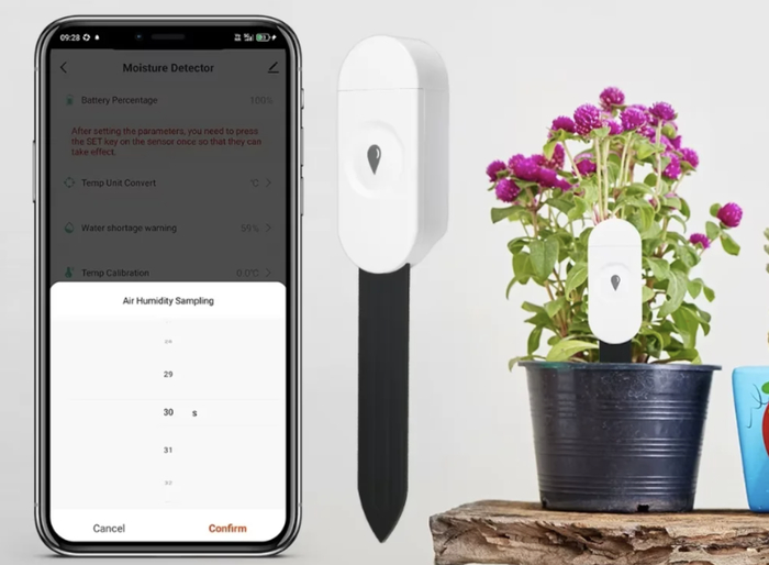 Компактный сенсор контролирует уровень влаги в грунте и передаёт данные в приложение. Работает с экосистемой Tuya Smart через шлюз ZigBee.