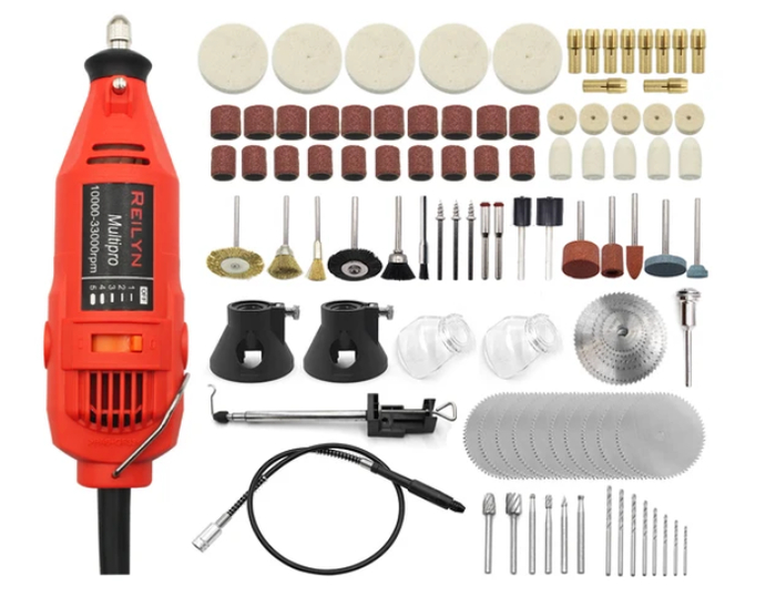 Универсальный инструмент для гравировки, полировки и резки. Компактный корпус, сменные насадки, плавная регулировка оборотов. Подходит для хобби, ремонта и точной работы по дереву и металлу.