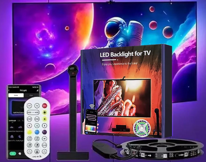 Подсветка с динамической сменой цветов и управлением через приложение. Создаёт атмосферу кинотеатра дома, снижает нагрузку на глаза. Совместима с ТВ от 55 до 75 дюймов.