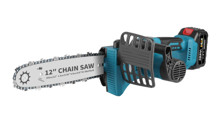Компактная цепная пила для обрезки деревьев и садовых работ. Бесщеточный мотор, аккумуляторное питание, защита от перегрева. Удобная, лёгкая и быстро справляется с задачей.