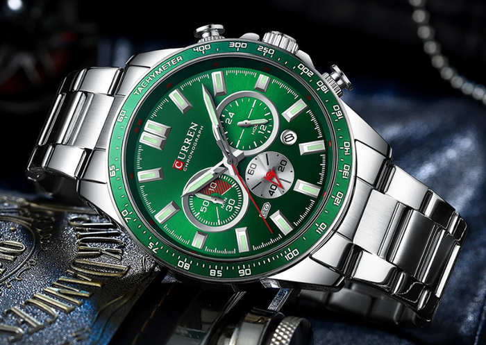Стильные часы с корпусом из нержавейки и спортивным дизайном. Имеют секундомер, дату и водозащиту. Надёжный механизм и комфортная посадка. Универсальный аксессуар на каждый день.