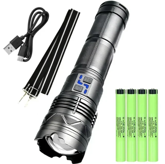 Мощный компактный фонарь с зумом и несколькими режимами. Работает от аккумулятора или батареек. Подходит для кемпинга, авто и аварийных ситуаций. Ударопрочный и водостойкий корпус.