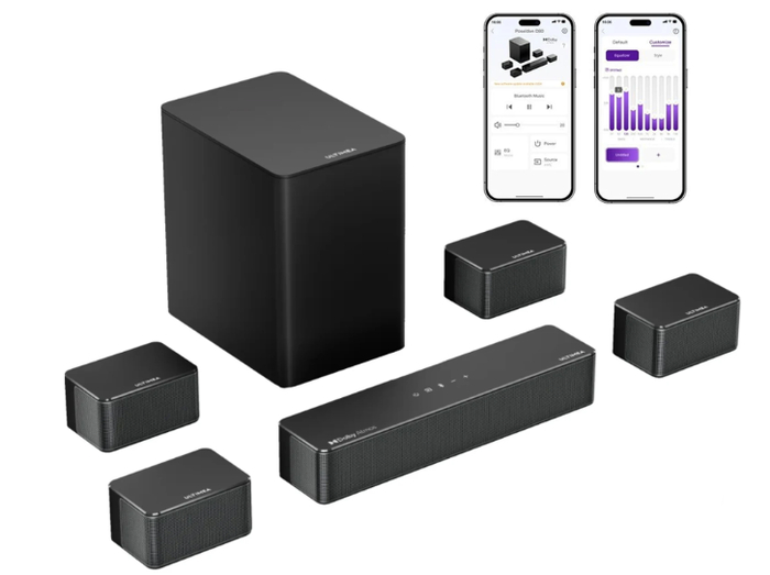 Погружающий звук с поддержкой 7.1-канального объёмного звучания и Dolby Atmos. Управляется через приложение, пульт или голосовые ассистенты. Идеальное дополнение к домашнему кинотеатру или геймерскому сетапу.