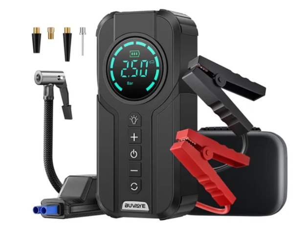 Уникальное устройство, сочетающее в себе пусковое устройство для автомобиля (Jump Starter) и мощный воздушный насос. Подходит для автомобилей с бензиновыми и дизельными двигателями.