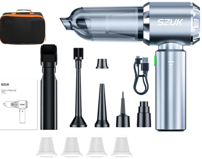 Идеален для быстрой уборки в машине, на столе или на диване. Работает от аккумулятора, имеет несколько насадок и многоразовый фильтр.