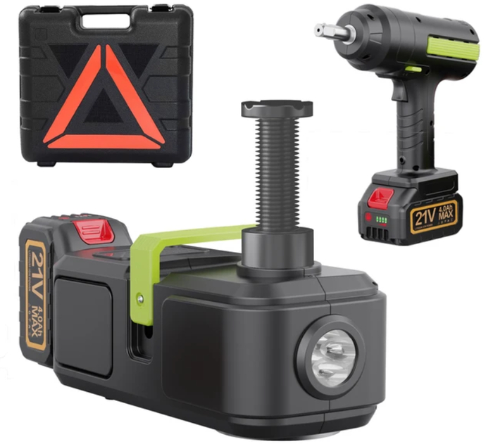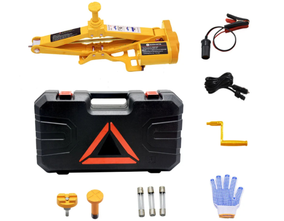 Мощный электрический домкрат с максимальной грузоподъёмностью до 3 тонн — отлично подойдёт для внедорожников и легковых автомобилей. Подключается к прикуривателю, поднимает машину за считанные минуты.