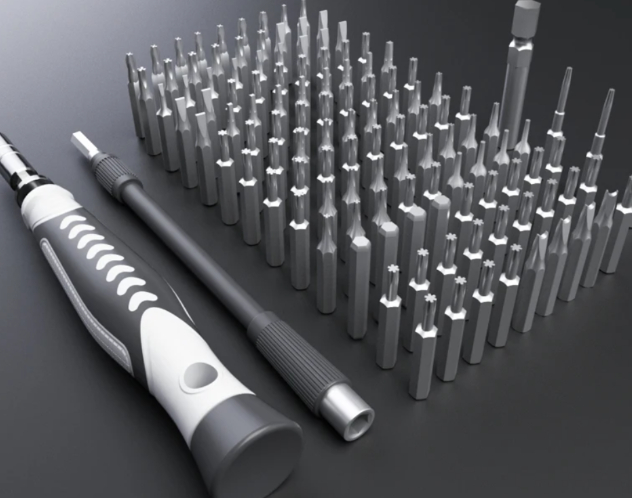 Универсальный набор для мелкого ремонта, состоящий из 130 предметов: биты, удлинители, пластиковый инструмент для разборки, антистатический пинцет и многое другое.