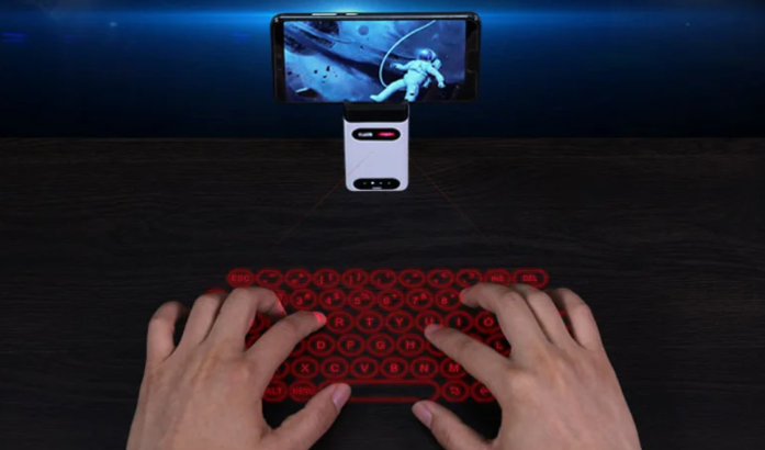Этот гаджет выглядит как аксессуар из фантастического фильма — компактный проектор создаёт полноценную QWERTY-клавиатуру прямо на любой поверхности.