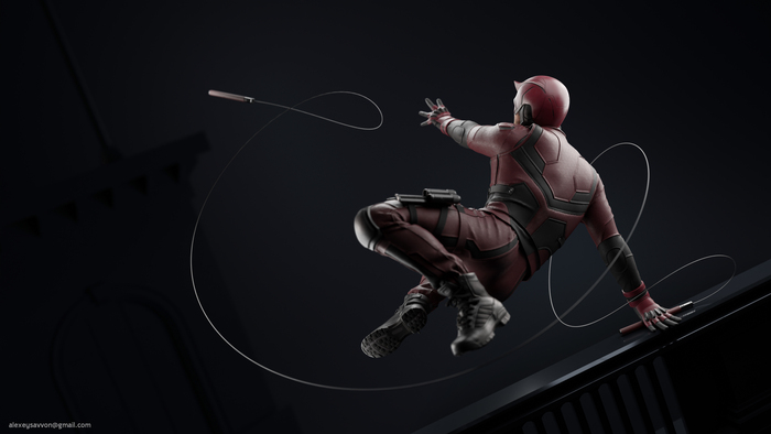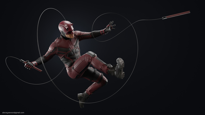 Эта модель родилась с идеи сделать какого-то интересного, но не столь мейнстримного персонажа. Выбор пал на Сорвиголову, которого сыграл Чарли Кокс в сериале от Netflix.