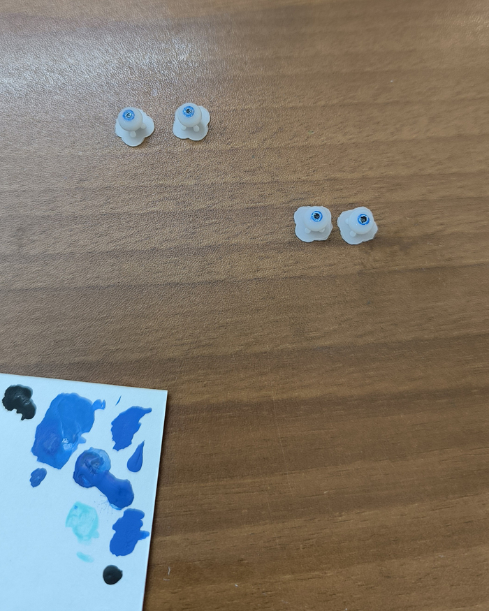 Эксперимент с отдельными глазами и эластичными материалами на этом этапе для себя закрываю. Решение оказалось рабочим, но слишком сложным и нестабильным для повторения в текущем виде.