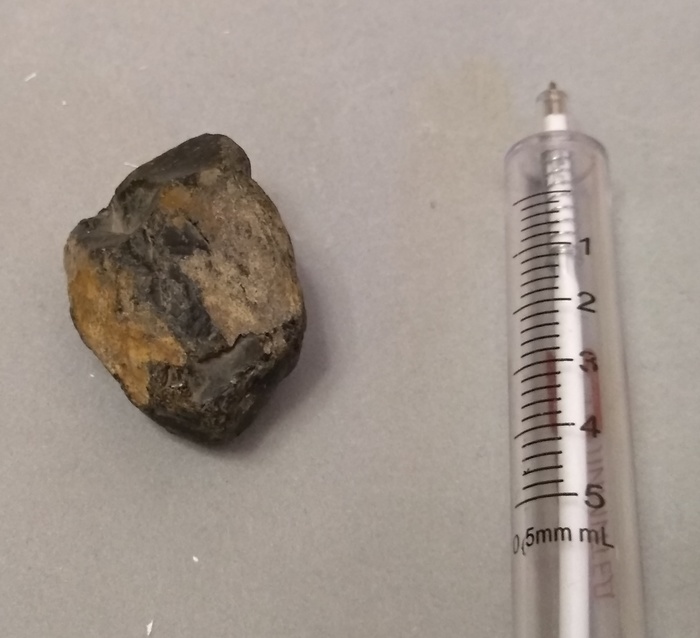 Здравствуйте! Нужна помощь в определении типа руды или минерала. Образец был найден на дне свежего оврага в глинистой почве, вместе с ним были россыпи красноватых кристаллов, предположительно, кварца.