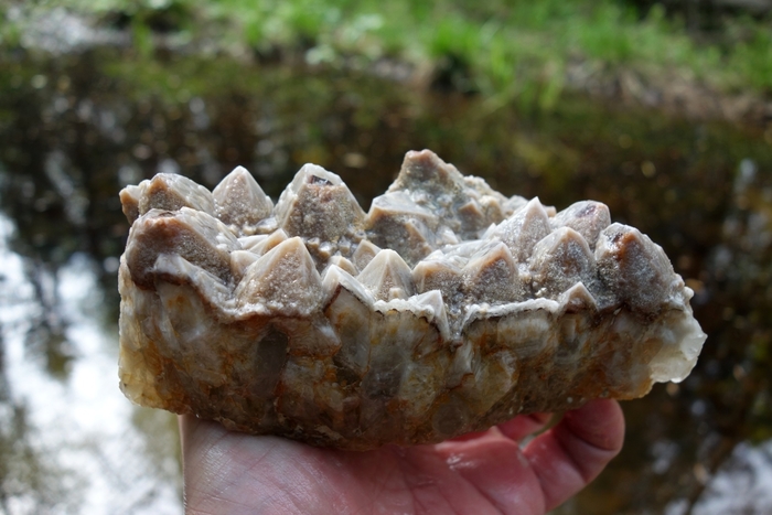 Если загуглить, то Новотемирское месторождение характеризуется как месторождение поделочного опала. Опал залегает в виде линз и прожилков в серпентините. Собственно вся площадь карьера засыпана обломками опала, можно ехать даже без молотка и просто собирать "урожай" руками.