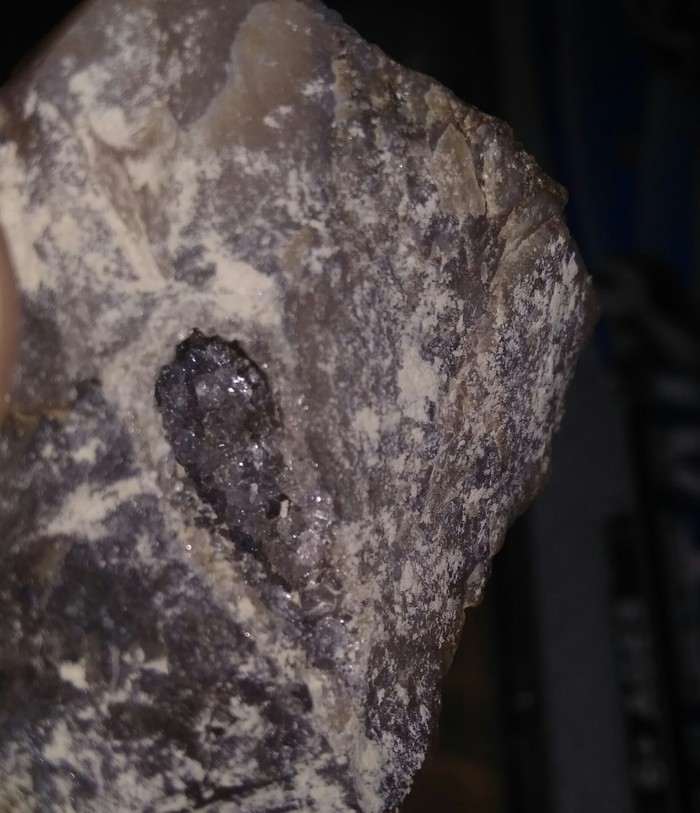 Камень со сквозным отверстием. Внутри которого какие-то кристаллы.