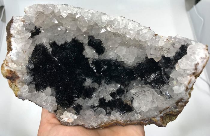 •Септарии очень часто минерализованы, т.е. содержат внутри разные минералы. В основном это мергель, сидерит, кальцит, сфалерит, барит, реже галенит, пирит или вюрцит. В моём образце чётко можно заметить прожилки кварца и кристаллы пиритов.