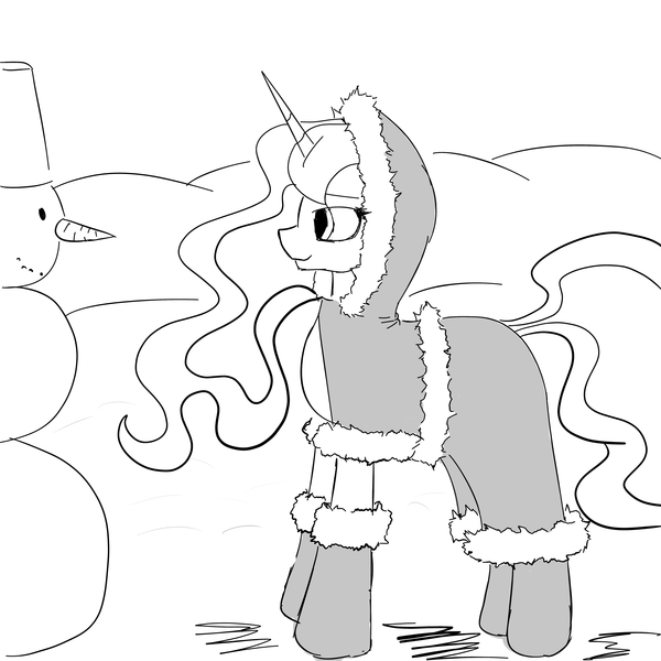 С этими словами, Фрида умчалась, оставив серого единорога в компании морковки. Пожав плечами, Расти уселся прямо посредине улицы и принялся за перекус. Морковка захрустела на зубах, а, чтобы не скучать за приёмом пищи, единорог принялся водить копытом по дорожному покрытию. И чем меньше оставалось от несчастного овоща, тем в более причудливые изображения складывались линии от копыт. Хотя, сложно назвать рисунок дома причудливым. Расти задумался, пометил одну из стен единичкой, а в стене напротив нарисовал дверцу. За ней он решил нарисовать лошадку. Лошадка вышла очень похожая, на ту, с которой он путешествовал. Поэтому недолго думая, единорог подписал её – «Фрида». В домике же он нарисовал точно такую же лошадку. Вдруг, новоявленного художника отвлекла целая серия громких хлопков. Присмотревшись, он увидел, как розовая пони радостно кого-то приветствует, вручая связку шариков и праздничную шапочку. Что же, Расти это не касалось и он вернулся к своему рисунку.
