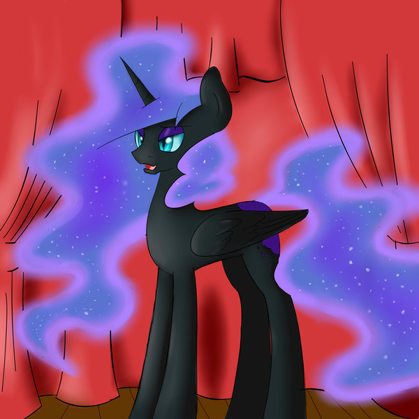 Перед ней стоял пони, глаза и маниакальная улыбка которого горели малиновым пламенем. От него исходила странная, хаотичная на первый взгляд музыка, но в последствии в ней угадывался и стремительный ритм, и мелодичность. Сотни разных, не связанных друг с другом звуков, накладываясь друг на друга в определённой последовательности, создавали прекрасную и в тоже время ужасную мелодию, от которой у зверя жутко заныли кости и заболели уши. Пони сделал шаг вперёд, и ,усмехнувшись, сказал странным, строенным голосом: