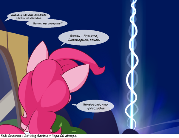 — Ну так слушай же. Сперва я расскажу немного о том, на чём держится наша Гармония. Видишь ли, у светлой и радостной Эквестрии есть тёмная сторона. Ты знаешь о ней, именно она когда-то свела с ума Луну. Эта сторона — в нас, аликорнах. Каждая из нас едина в двух лицах. У Луны это Найтмэр Мун. Моё альтер-эго, как ты знаешь, зовут Солар Флэйр. Кэйдэнс и Твайлайт пока слишком юны, чтобы помогать нам, и потому тьмы в них нет. Однако такими мы были не всегда. Мы сознательно пошли на это, решив создать королевство-рай. Королевство-сад. Место где все процветают и почти все счастливы, место где пони просто живут и радуются жизни, радуя и других. Как прекрасные цветы на величайшей клумбе. Это было непросто. Нелегко ловить тьму, ещё сложнее не давать занять освободившееся место, практически невыполнимо удержать её. Но мы справились. Мы стали узилищем тьмы, тюрьмой и стражниками одновременно. Однако был и ещё один источник, через который тьма рвалась в нашу страну — души. Приходя из-за Конца миров, души несут в себе как свет, так и тьму, поровну. И мы встали у этого источника. Каждый рождённый в Эквестрии не совсем полноценен — мы лишили его его же тёмной половины. Лишили выбора. Понимаешь о чём я? Они просто не могут стать настоящим злом. Не способны сами по себе. Но тьма заразна. Явись ты как есть, с твоей памятью, с твоим мировоззрением, с твоей душой, ты начнёшь отравлять наше королевство.