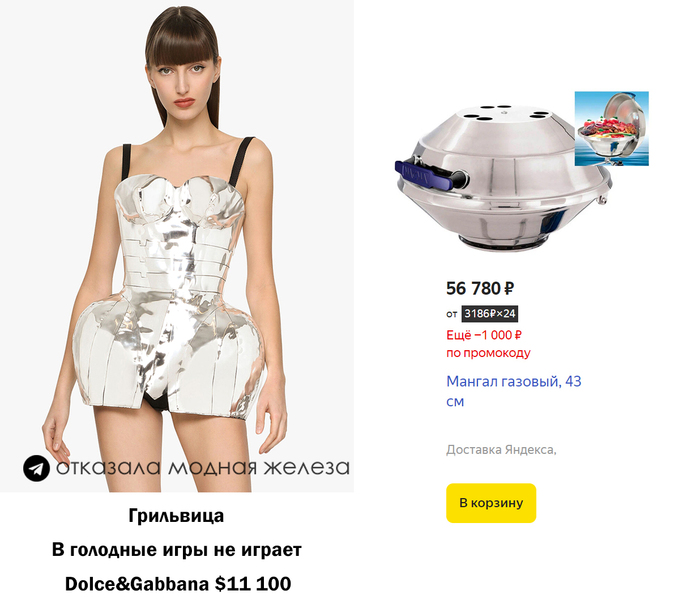Салют, немодные, сегодня спецвыпуск! Посвящен он будущим майским праздникам. Я увидела, какое потрясающий выбор мангалов в наши дни на разный вкус и кошелек, и была просто обязана подобрать под каждый из них люксовый наряд.