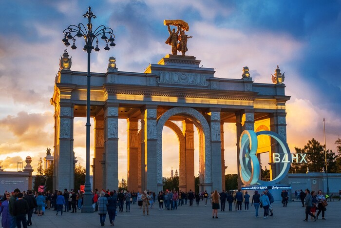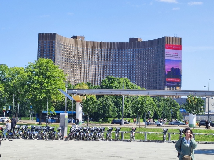 Мой прекрасный гид очень хотела показать мне это место. Я же, поначалу, вообще не понимал хайпа вокруг него. Как-то так вышло, что Выставка достижений народного хозяйства вообще прошла мимо моего внимания до посещения этого города. Нет я слышал про это место раньше, но не видел как оно выглядит, потому, услышав это название, воображение рисовало какой-то рынок, с кучей ларьков, магазинов и прочего. Когда же я вышел со станции метро, мое внимание сразу приковала гостиница "Космос". Для тех, кто не в курсе, именно по ней Жанна Фриске каталась в "Дневном дозоре"