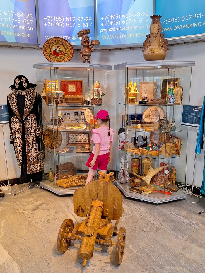 Вторая точка — Останкинская телебашня. Строгий и долгий контроль, два досмотра, с собой обязательно нужен паспорт и свидетельство о рождении ребёнка. Нельзя проносить воду, еду, таблетки, маникюрные ножницы, но есть бесплатная камера хранения, где всё это можно оставить.