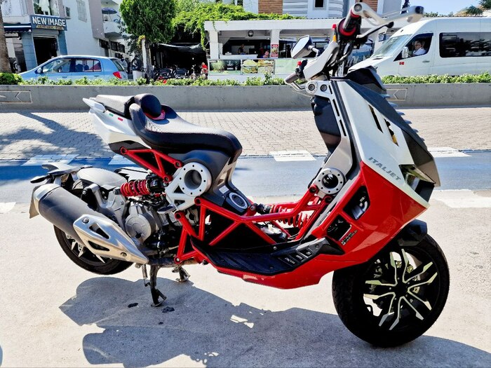 Один цилиндр мотора от Бомбардье объёмом в 650 кубиков! Ременная передача! Куча японской фигни прикрученой к мотоциклу.