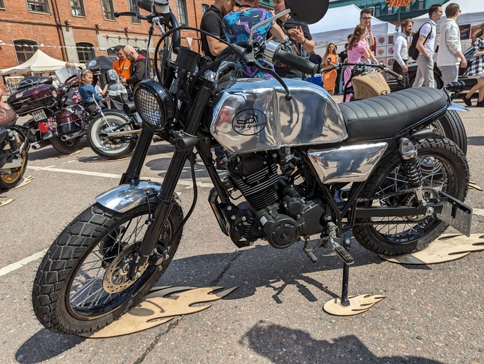 Вот мой случай. Десять лет назад я пошёл покупать свой первый мотоцикл. Приехал в огромный ангар на улицу Ольги Бертгольц и офигел от выбора. Я как и большинство немотоциклистов знал тогда только что есть чопперы и спорты. А там прям чего только не было.