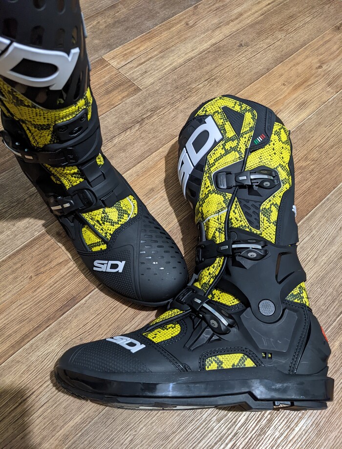 Несмотря на то, что в интернете есть огромное количество разной экипировки, в оффлайн-версиях тех же магазинов нет почти ничего... моего размера (Я довольно мелкий - нога 41 размера). Поэтому идея выбрать что-то, что понравится быстро отсохла. Пришлось брать из того что подходит.