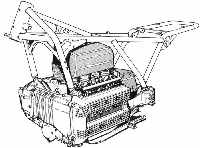 Мотор был интегрирован в силовую структуру рамы. То есть его корпус выполнял несущие функции.