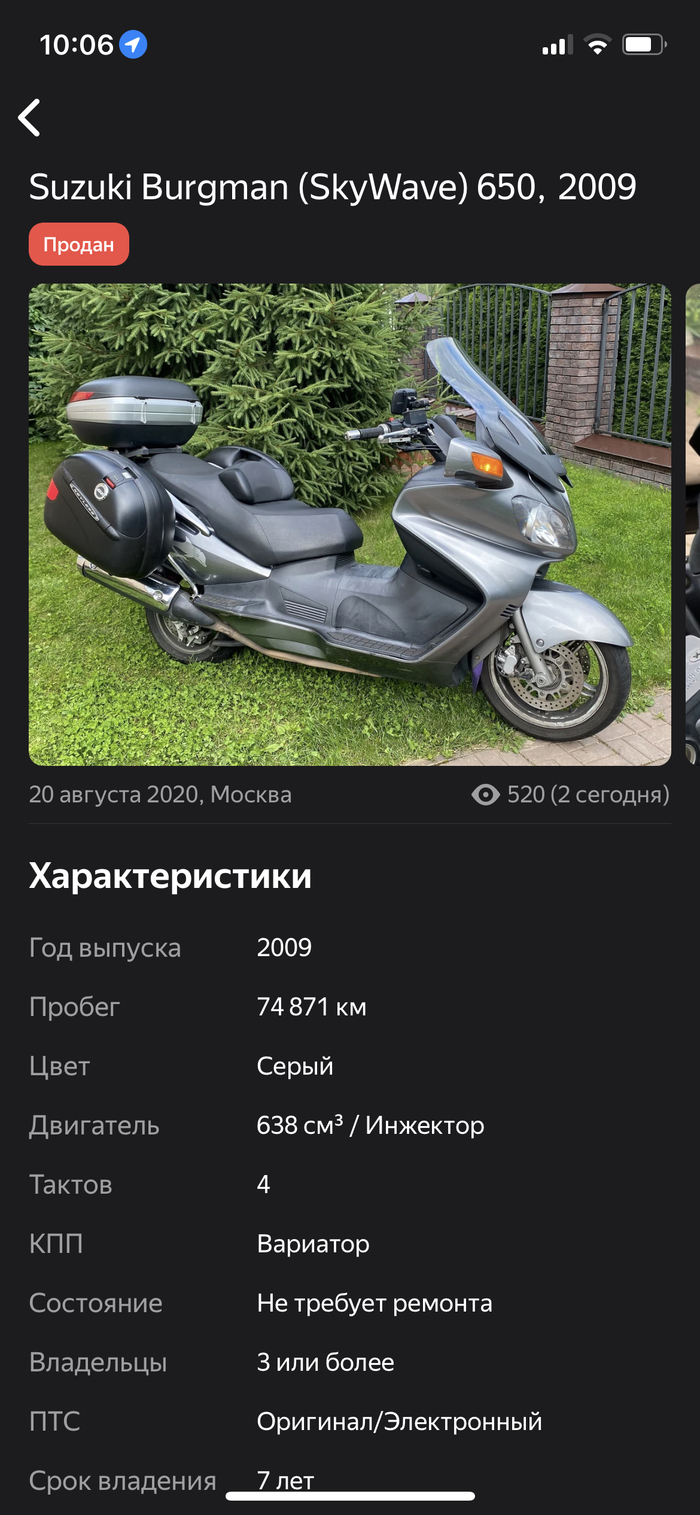 Наткнулся на всем известном сайте на объявление о продаже максискутера: