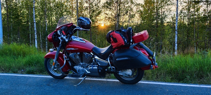 По багажу запаса не было вообще, что для нас было довольно непривычно. После 162-ух литров (возможных без драмы) на Yamaha TDM, здесь почувствовали себя хиппи. Вот-вот запах свободы и холода ударит нам в лицо. Настолько я преисполнился этим шальным духом американской свободы (мотоцикл разработан в американском подразделении Honda), что даже мотокуртку не взял, ограничившись зимней толстовкой. Спойлер - Русский север меня за это наказал.