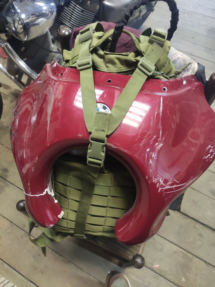 Первое, что бросается в глаза — бензобак. Можно было бы поэкспериментировать и вмонтировать туда кофр или дополнительную съёмную батарею например. В прототип такое решение не вписывается, а вот при условии дизайн-макета на базе какого нибудь «китайца» с ДВС, вполне.