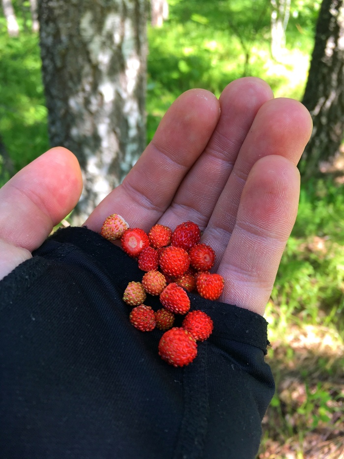 Эта дорога ведет через живописные места, где воду наблюдаешь то справа, то слева. А иной раз появляется болото, в котором точно должны обитать аллигаторы. Проезжая еще немного, по пути, наконец, пошла цивилизация – небольшие (а где и ого-го какие большие) коттеджи, деревеньки и местные весьма достойные санатории. Сразу улучшилась дорога, что от неожиданности и недавнего знакомства с лесными кочками да ямами пришлось спешиться и освежиться. Расставшись с балластом, я немного погулял и набрал земляники, так как завтрак, который я стараюсь брать с собой везде в виде банана, протеинового батончика и воды, во мне давно исчез.