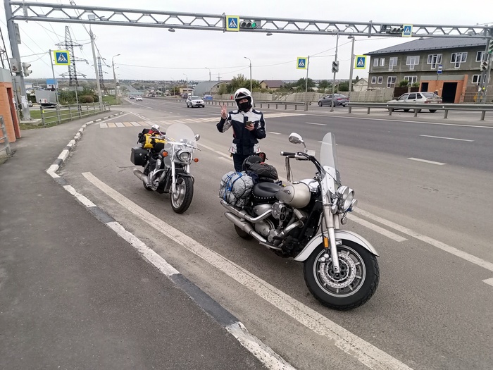 Итак... в назначенный день мы двумя мопедами выезжаем из Москвы в южном направлении. Первый день пути особо запомнился поздним вечером.) Попали в жесточайший ливень. Настолько лютый, что... Ехали за фурами, буквально ориентируясь на их габаритные огни. А у меня ещё и шлем 3/4 - визор в воде и снаружи, и внутри. Почему ехали? До запланированной гостиницы оставались пара десятков километров, до неё остановиться негде, прогноз погоды перспективой не радовал и ночь на носу. Поэтому аккуратно, тихонько, по воде и ехали. Натерпелся я тогда. Но доехали. В гостиницу зашли как водолазы...)) Мокрое было всё, нижнее бельё тоже, абсолютно. В обуви вода по самый верх. Думали, что нас не пустят.) Пустили. И даже выдали сушилку для одежды с калорифером. Спасибо! Но, лужу мы им там нашим мокрым шмотом сделали знатную. Ну тут интересное заканчивается. Переоделись в сухое, покушали в кафе, и спать.