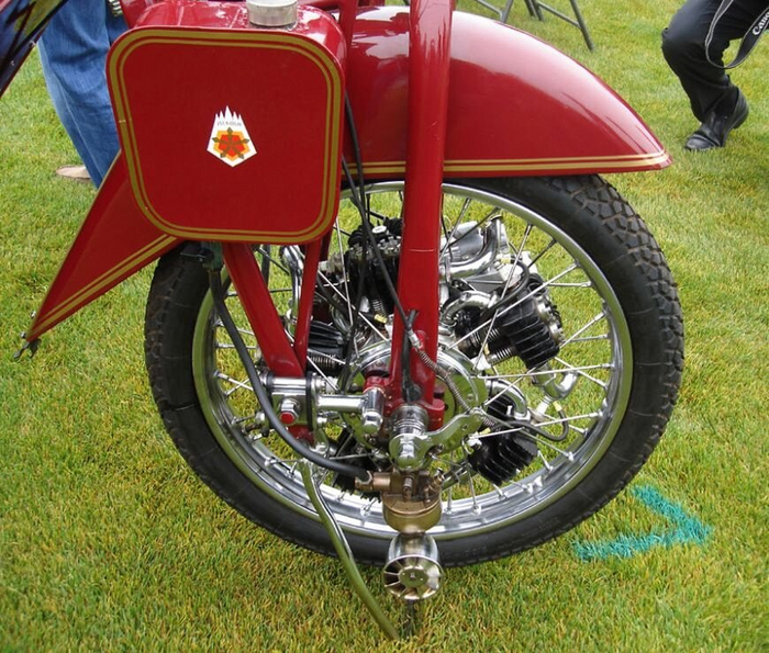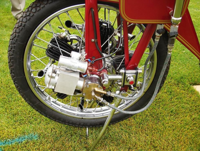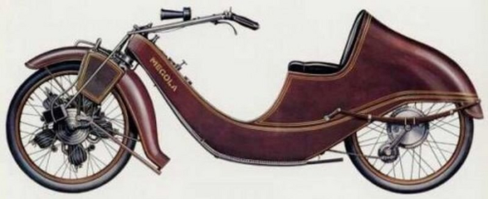 «Megola» — мотоцикл с передним приводом и мотором на переднем колесе, что было редкостью даже в начале прошлого века, и по-прежнему считается смелым решением.