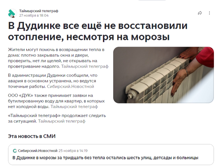 А в группе "Подслушано в Дудинке" 3 часа назад уже пишут, что проблема не решена. Последсвия поломок описывают в комментариях