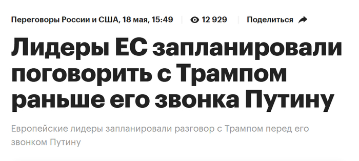 В итоге, у Трампа сейчас два пути: договориться с Россией на +- адекватных условиях и потом продавить на них Киев, угрожая остановкой помощи, либо же угрожать санкциями РФ и пойти по пути Байдена - накидывать пакет за пакетом, пока РФ будет продолжать наступление.