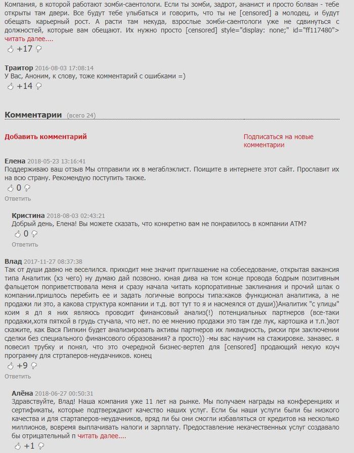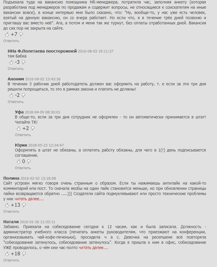Мораль сей басни такова: друзья, петербуржцы, уважаемые соискатели, никогда и ни за что не позволяйте работодателю (вашему нынешнему, а тем более потенциальному) принижать вас в диалоге, умалять и отказываться принимать ваши профессиональные качества во внимание!)) Если вас не устраивает то, в каком ключе проходит собеседование или что-то смущает, прислушивайтесь к себе, вставайте и уходите! Именно благодаря таким "терпилам",которые работают у данного персонажа, да и вообще в конторах, подобно этой, работодатель и пытается понизить вашу ценность( "вас много таких"),а следом и зарплату. Да нас много, но уважения простого человеческого никто не отменял, и работодатель должен помнить о том, что на собеседовании и его тоже ВЫБИРАЮТ!)