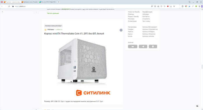 Ползаю по интернету, натыкаюсь на объявление с интересным компактным корпусом Thеrmаltаke V1 Snоw.