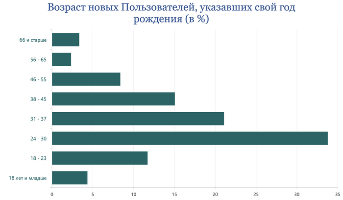 Из зарегистрировавшихся за месяц 1 811 (1,8%, на 4% меньше к предыдущему месяцу) указали свой пол, 558 (31%) из них оказались девушками.